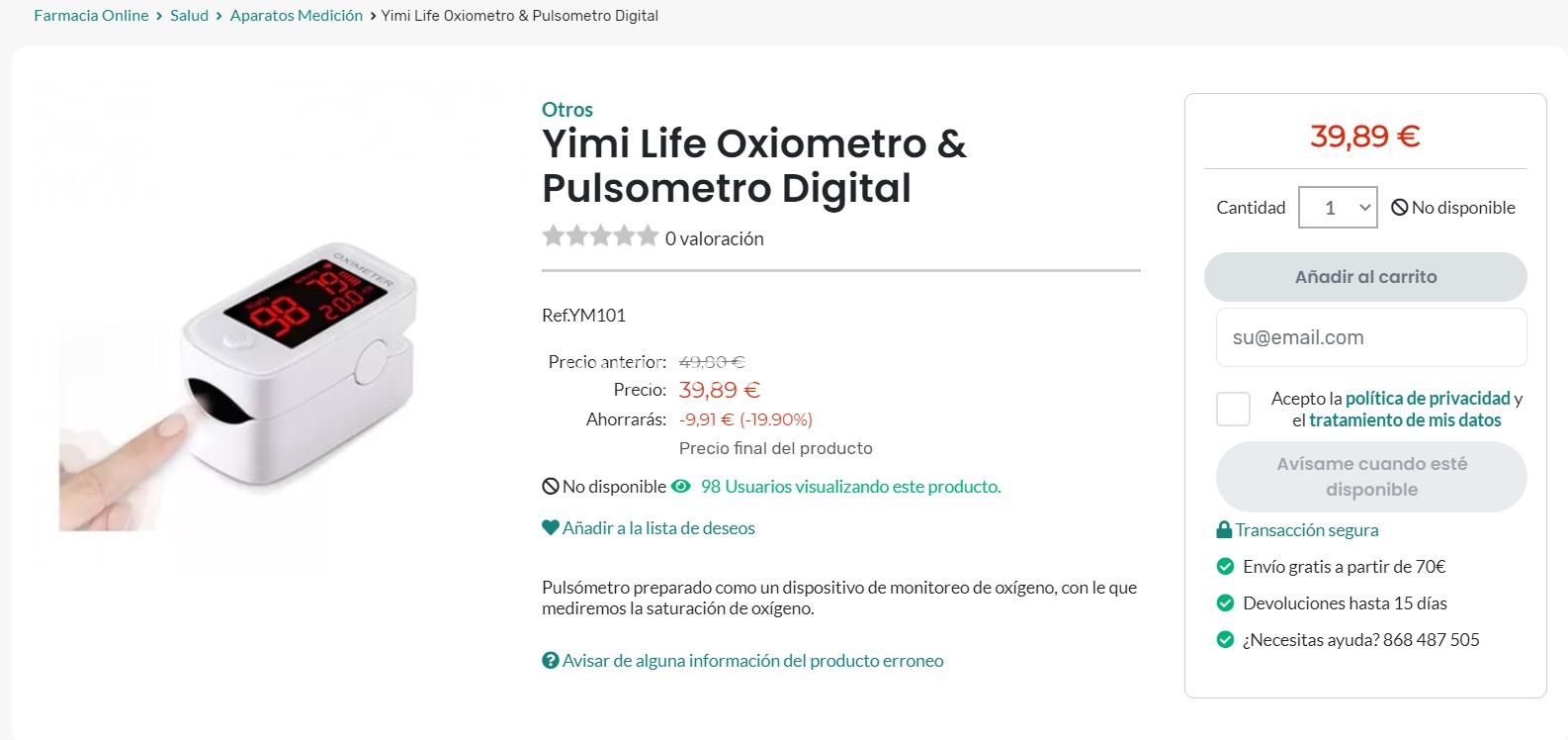 Mide la saturación del oxígeno con Yimi Life Oxiometro & Pulsometro Digital